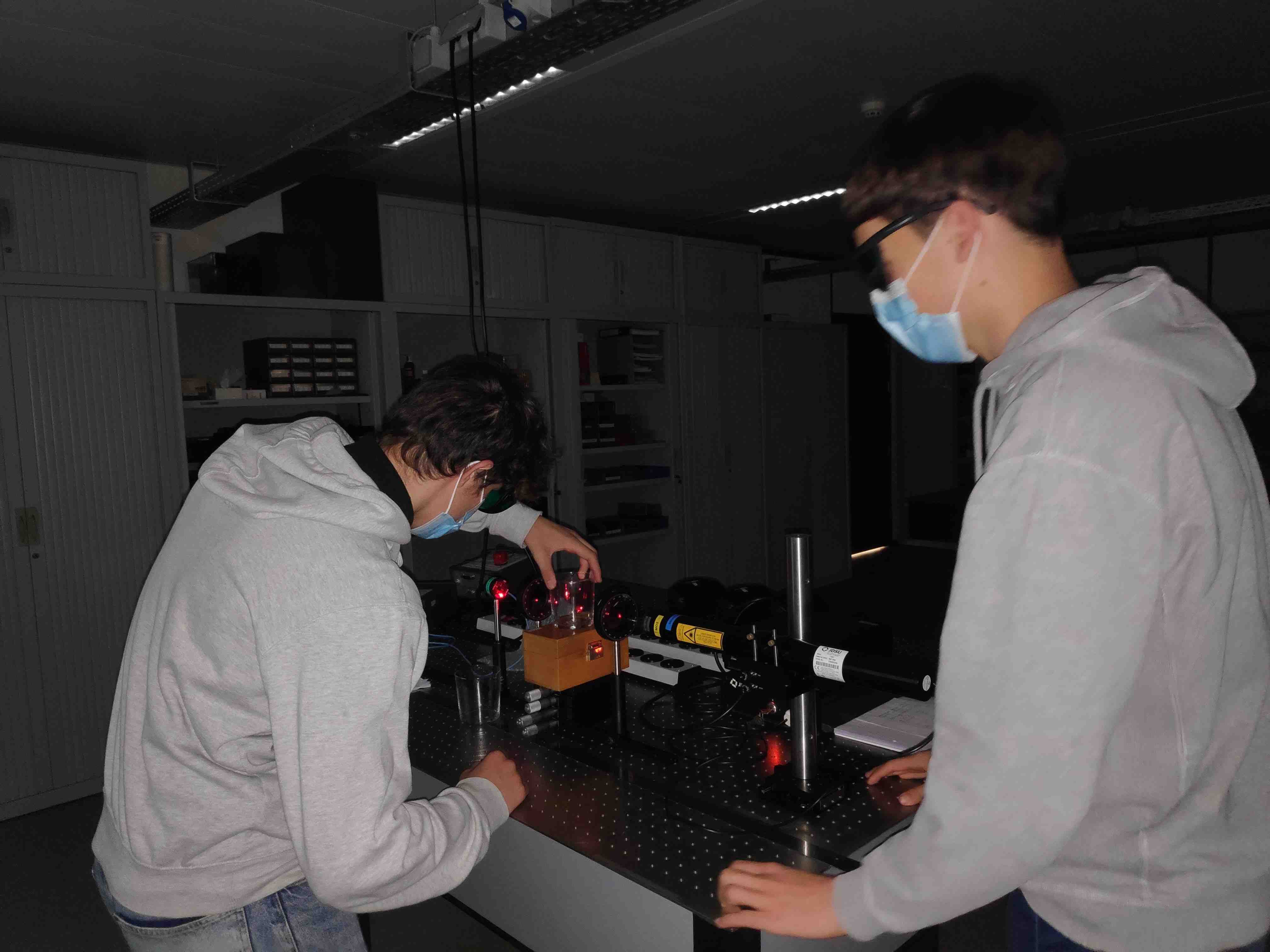 Samen met Indy Magnus, R&D Engineer bij VUB B-PHOT, sloegen ze aan het experimenteren. Ze kregen uitleg over optische componenten zoals lasers, vermogenmeters, polarisatiefilters. Ze leerden onder andere een HeNe laser uit te lijnen en hebben de polarisatieverdraaiing voor verschillende suikeroplossingen opgemeten. Op deze manier zijn deze studenten in staat om het verband tussen de suikerconcentratie en de polarisatieverdraaiing na te gaan.
